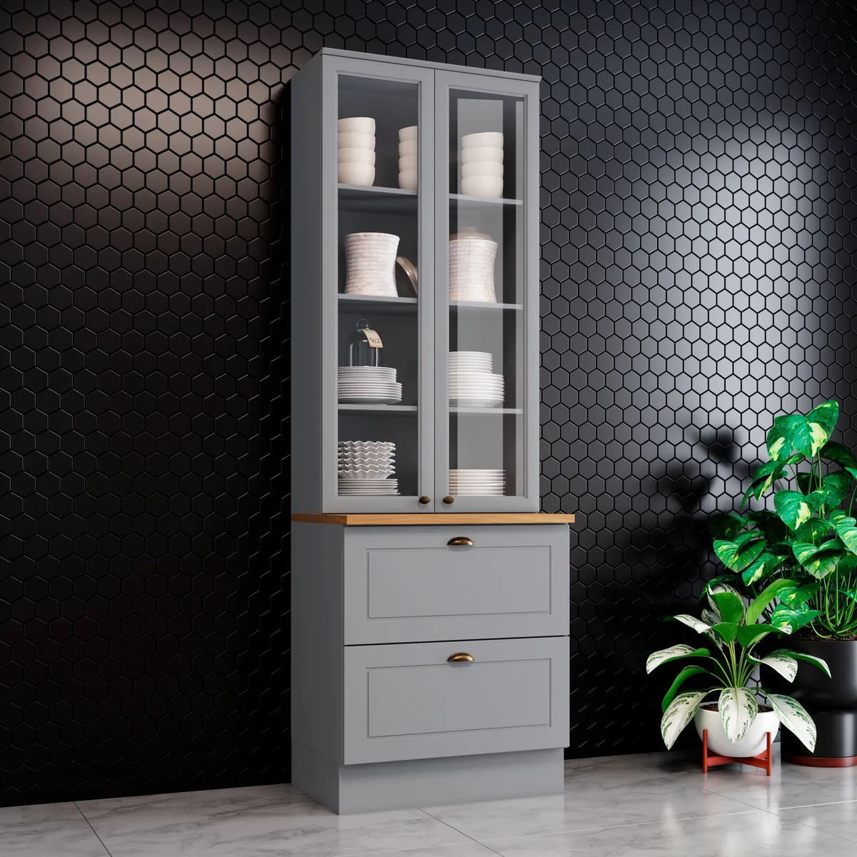 Armario panelero 2 puertas en vidrio, 2 cajones
